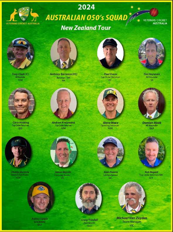 Australian O50’s Squad announced for Tour of New Zealand March 2024 15 Dec Written By Mark Tranter Mark Tranter